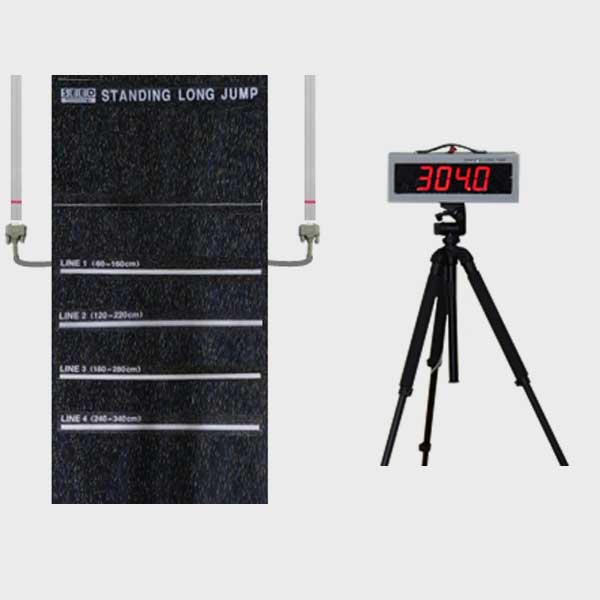 체력측정 항목 중 순발력 측정 장치로서 정해진 준비선에서 도약하여 점프한 거기를 측정하며,